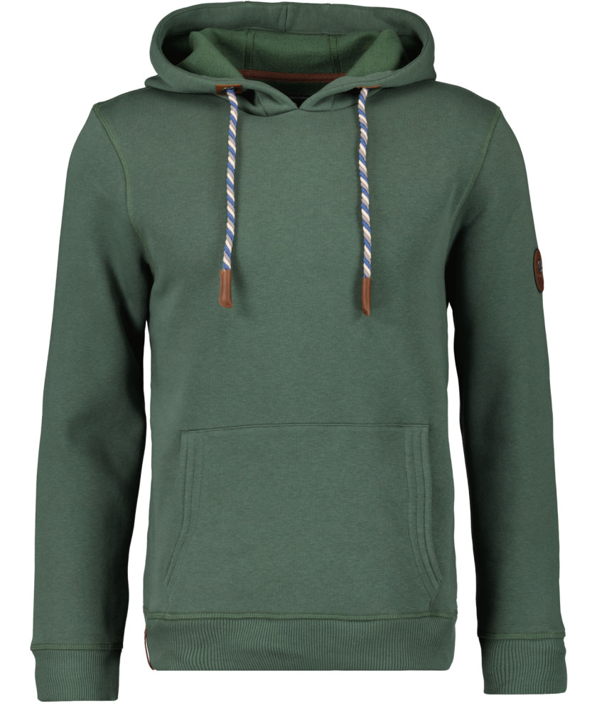 Dieser Hoodie-Sweater haut so schnell nichts um. Mit seinem Gewicht von 350 gsm ist er ganz klar in die Kategorie "starkes Stück" einzustufen. Er ist ein nützliches Fashion-item nach dem Sport, wenn die Frühlingssonne nocht nicht erwacht ist, beim Flanieren am See, in der Übergangszeit oder in der Alphütte oben am Berg u.v.m. In der Kängurutasche finden die Hände warmen Unterschlupf und die Kapuze ist schnell übergezogen, falls das Wetter umschlägt. Am coolsten mit kerniger Jeans, engeren Chinos und robusten Boots.