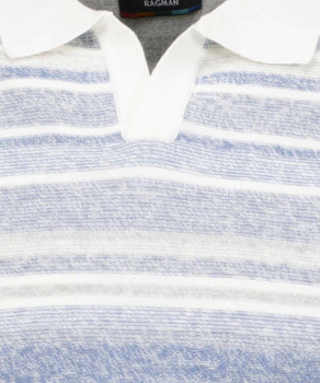 La dolce vita in Strick- dieser RAGMAN Kurzarm-Pulli ist die Hommage an das Lebengefühl Italiens. Mit seinem eleganten Resort-Kragen und dem raffinierten, mediterranen Streifendesign lässt er die Männer sofort an die Küste von Amalfi, stilvolle Cafés in Rom und entspannte Abende in der Toskana denken. Ein echter Hingucker, der die Leichtigkeit des italienischen Sommers einfängt – perfekt für jeden, der Mode liebt und dabei auf Komfort nicht verzichten will. Buonissimo! Tragen Sie ihn mit einer weißen Leinenhose oder einer leichten Chino und Espadrilles – und fühlen Sie sich, als würden Sie direkt aus einem Café in Capri treten! Der feine Strick in 100% reiner Baumwolle macht die Italien-Reise auch qualitätiv mit.