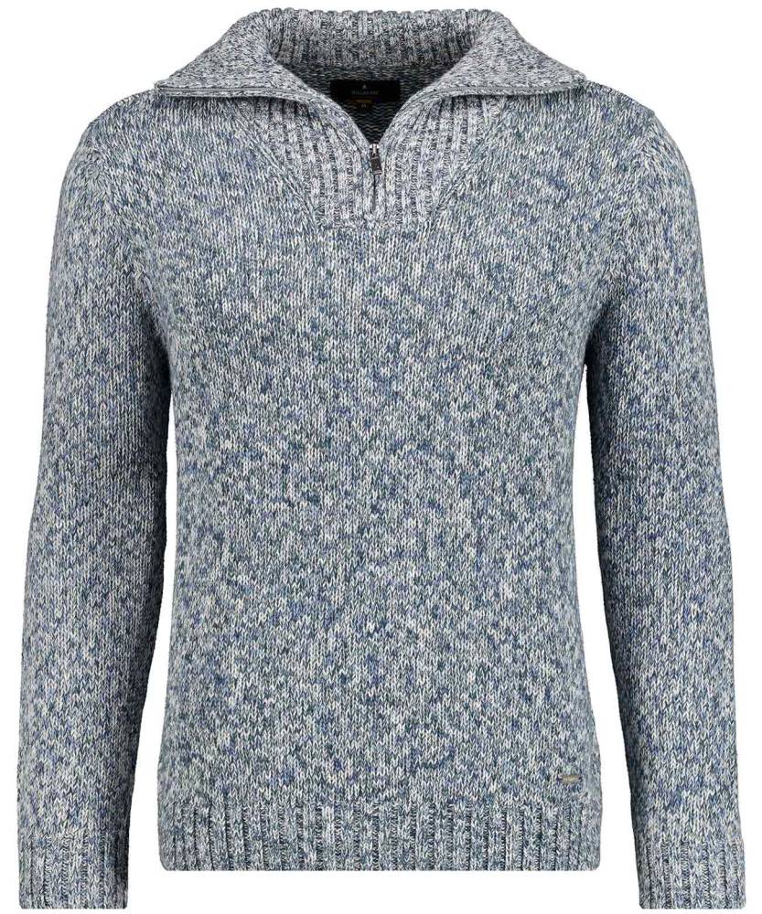 Indispensable in the colder months of the year: the casual RAGMAN knitted sweater with it's masculine Troyer collar with zip in the trendy tweed look. The look is completed with tightly knitted, coarse ribbed cuffs and the discreet Ragman logo. It complements all winter outfits and at the same time provides maximum wearer comfort due to the super-pleasant, soft cotton quality, which doesn't scratch. Has a regular fit.