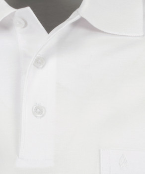 Straight-cut polo. Polo collar and fly front with three buttons. Chest pocket with small logo embroidery at Chestheight